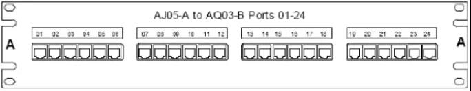 例如,圖4和圖5顯示了24位配線架使用的標(biāo)簽,24根6類(lèi)電纜連接到AJ05到AQ03機(jī)柜(見(jiàn)如圖2)。