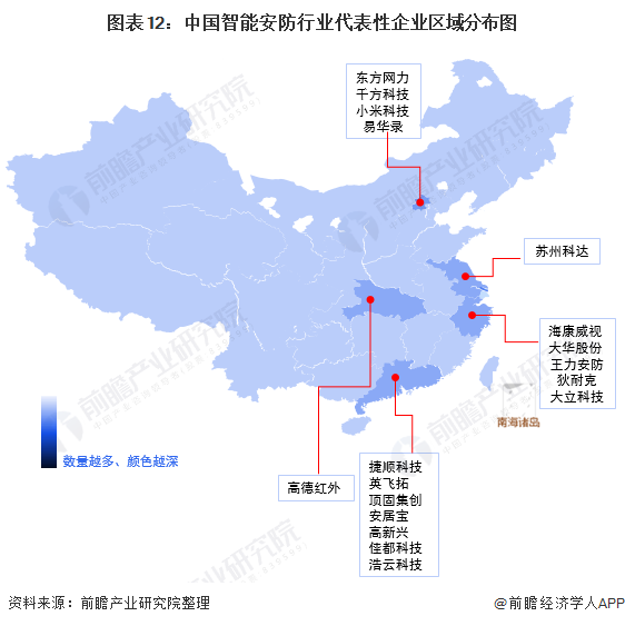 從代表性企業(yè)分布情況來看,智能安防軟硬件及系統(tǒng)集成企業(yè)主要分布于珠三角、長三角以及北京等地區(qū),運(yùn)營服務(wù)商以廣東地區(qū)居多。